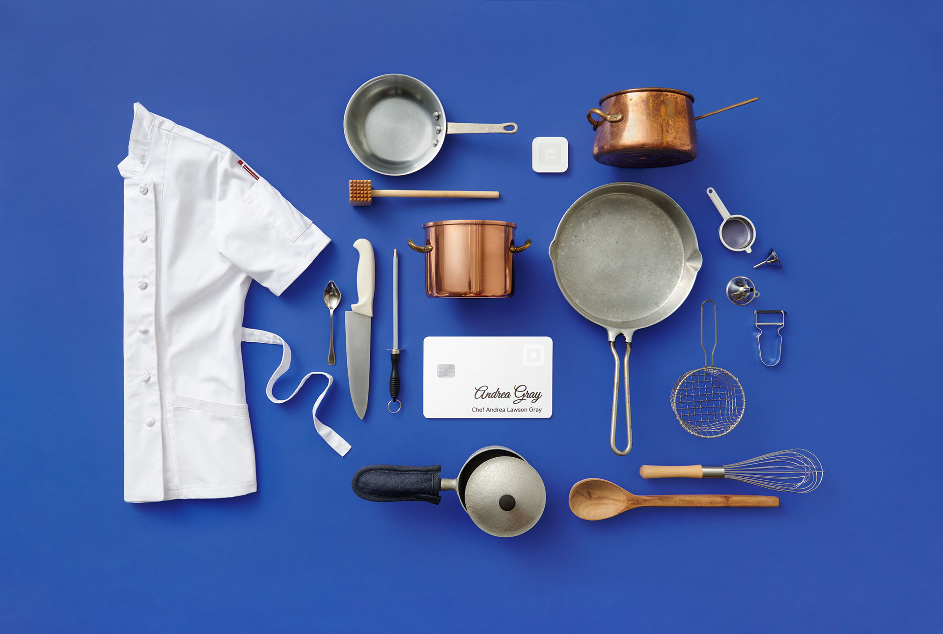A series of knolling laydowns for social media targeting Professional Services + Full Service Restaurants with the goal of increasing Square ecosystem awareness. We were lucky to have Chef Andrea Lawson Gray shoot with us for the day! In collaboration with Terence Bordon.